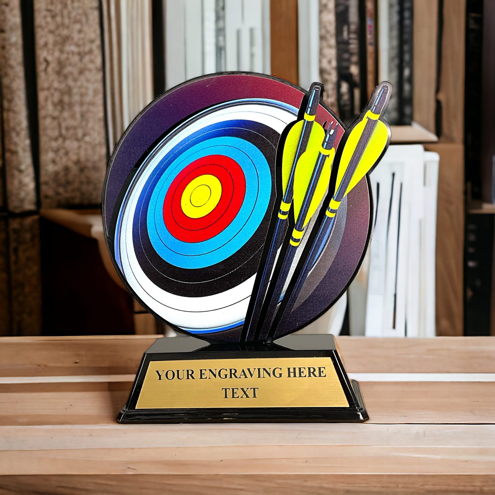 Akrylátová trofej z lesklého černého akrylu s UV potiskem. Jednostranný tisk. V ceně trofeje není zahrnuta cena štítku. Tloušťka 0.4 cm. Plastový černý podstavec.