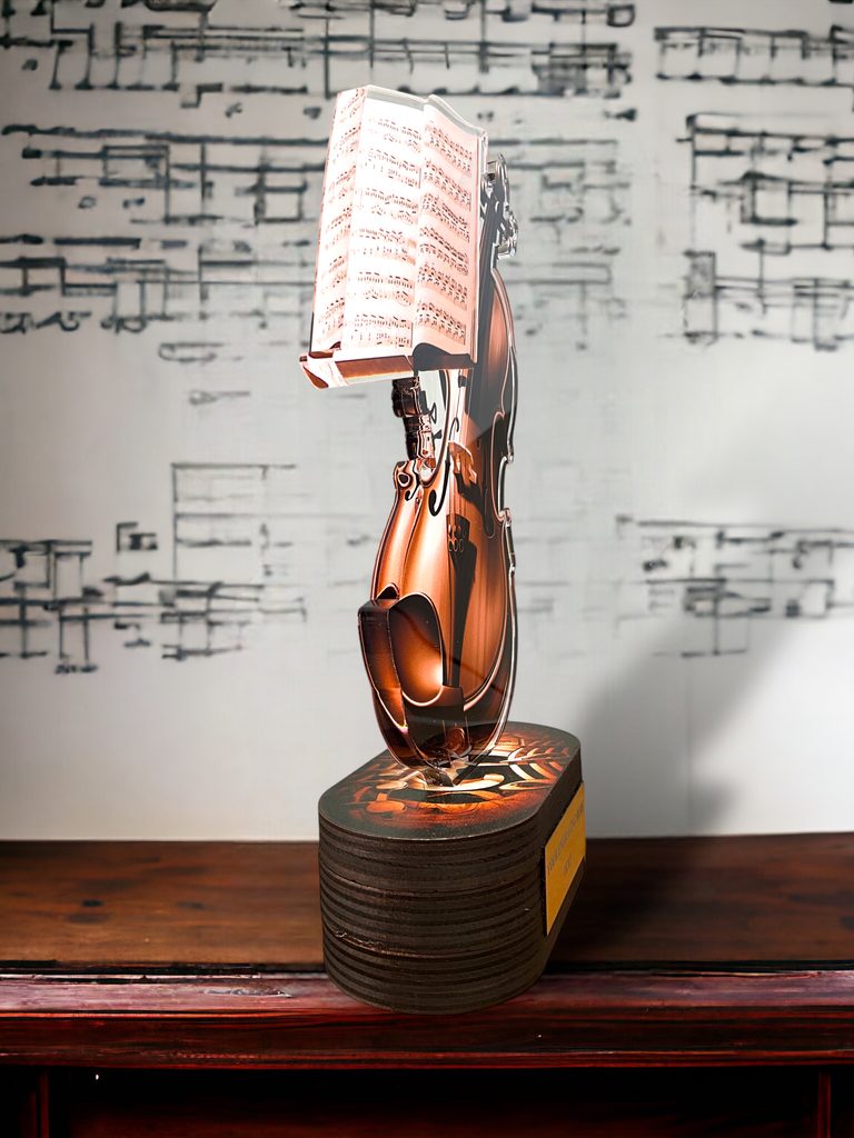 Akrylátová trofej s dřevěným podstavcem a UV potiskem. Výšky trofejí jsou orientační. V ceně trofeje není zahrnuta cena štítku.