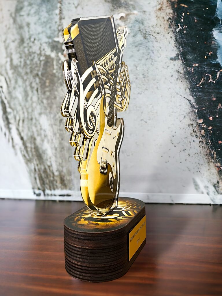 Akrylátová trofej s dřevěným podstavcem a UV potiskem. Výšky trofejí jsou orientační. V ceně trofeje není zahrnuta cena štítku.