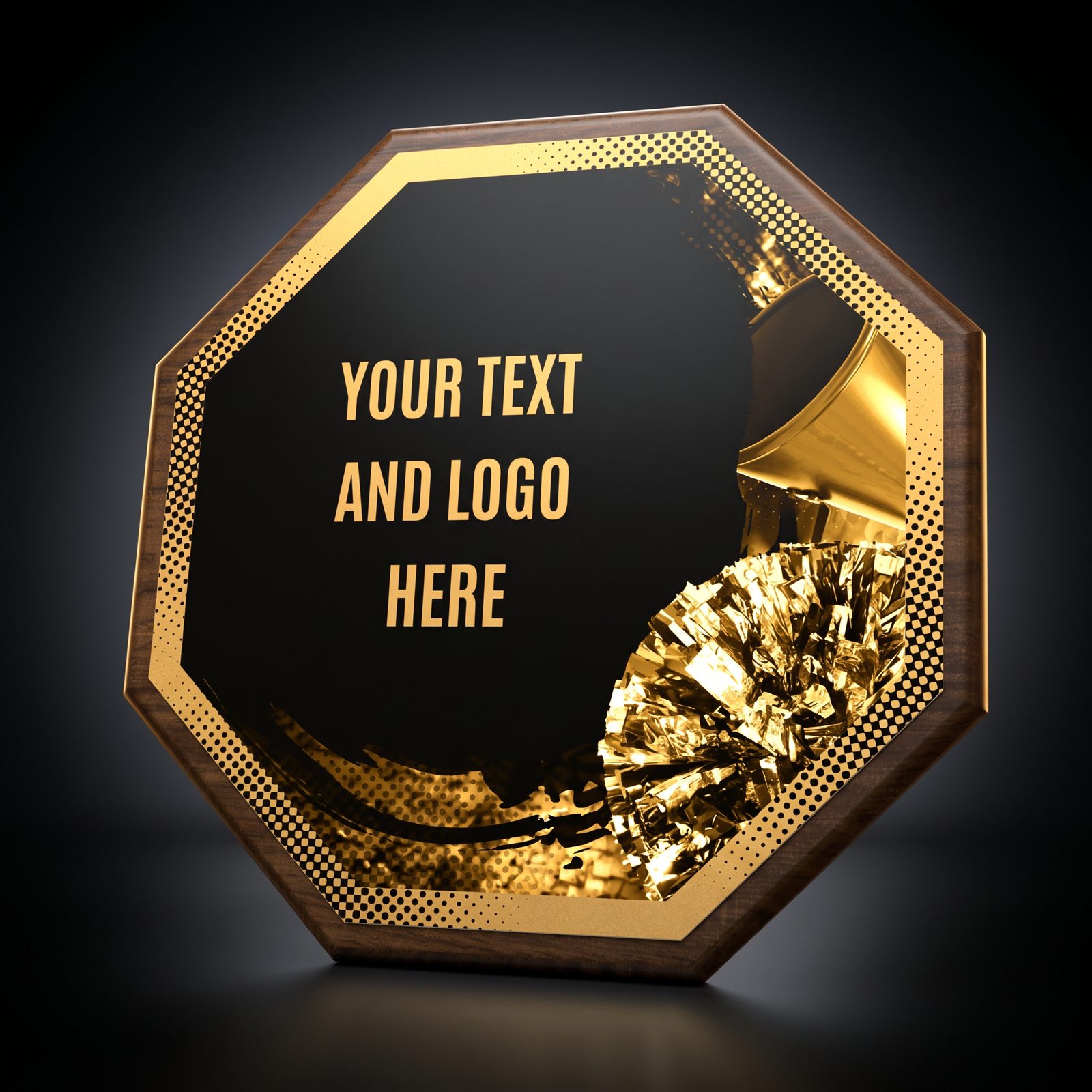 Štýlové ocenenie, ktoré kombinuje drevenú plaketu s priemerom 26 cm a hrúbkou 1,5 cm s výrazným dizajnovým stredom s priemerom 24 cm vyrobeným z kovu s UV tlačou a efektným lakom.