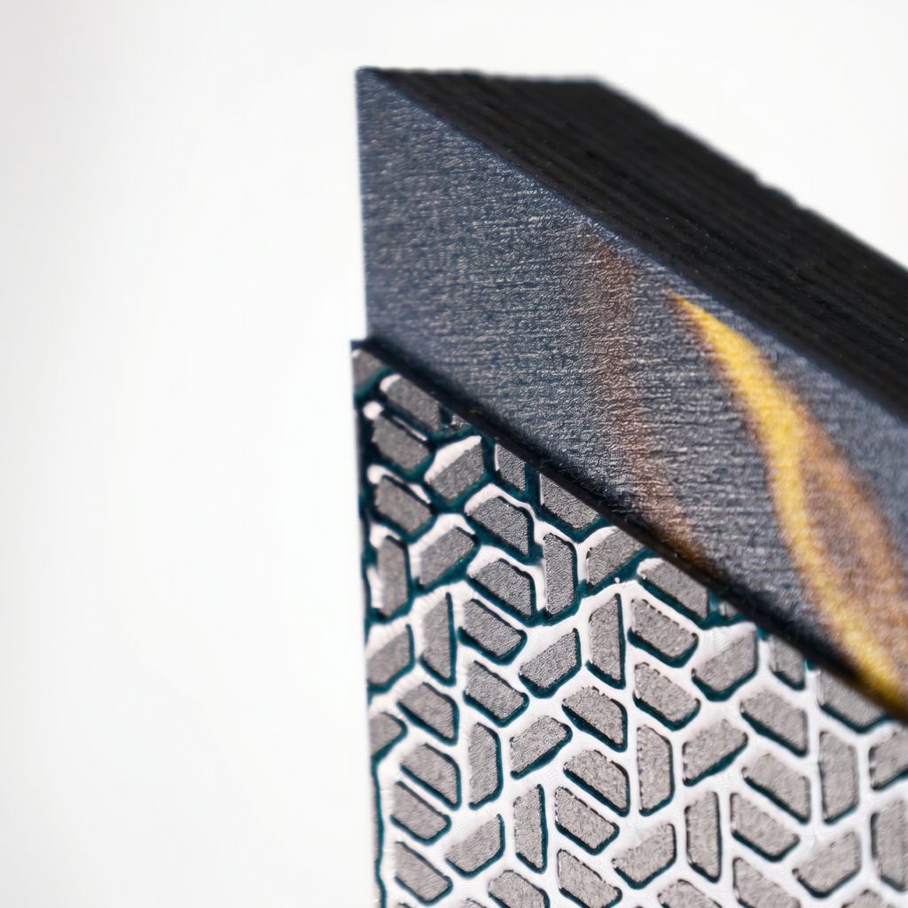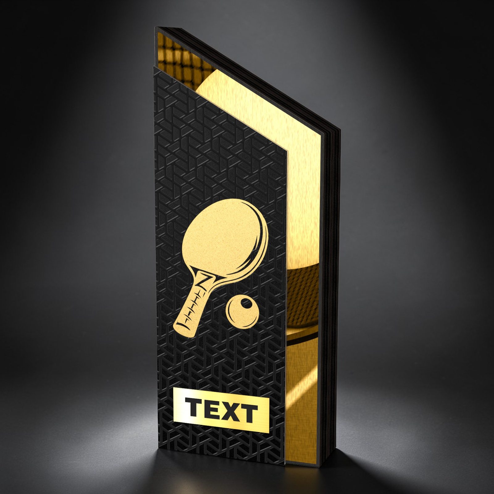 Športová trofej z dreva s hrúbkou 3 cm s kovovým detailom s hrúbkou 2 mm, dostupná v troch výškach a štyroch farebných variantoch. V spodnej časti je možné umiestniť plastový alebo kovový štítok.