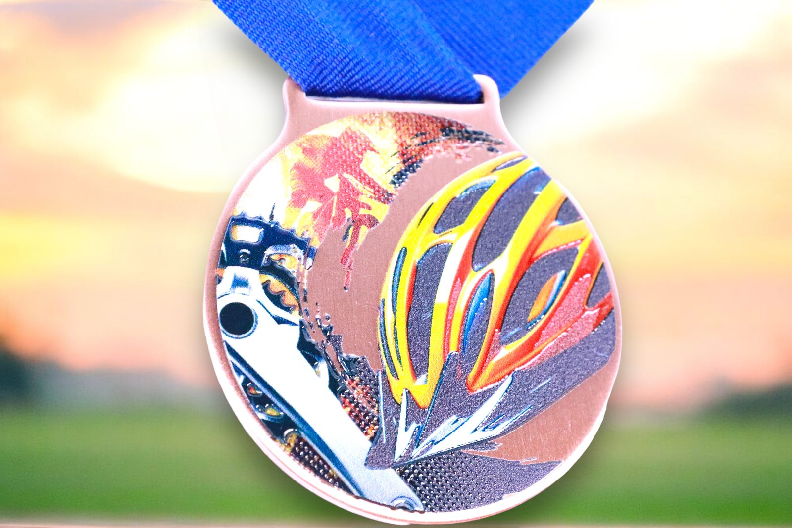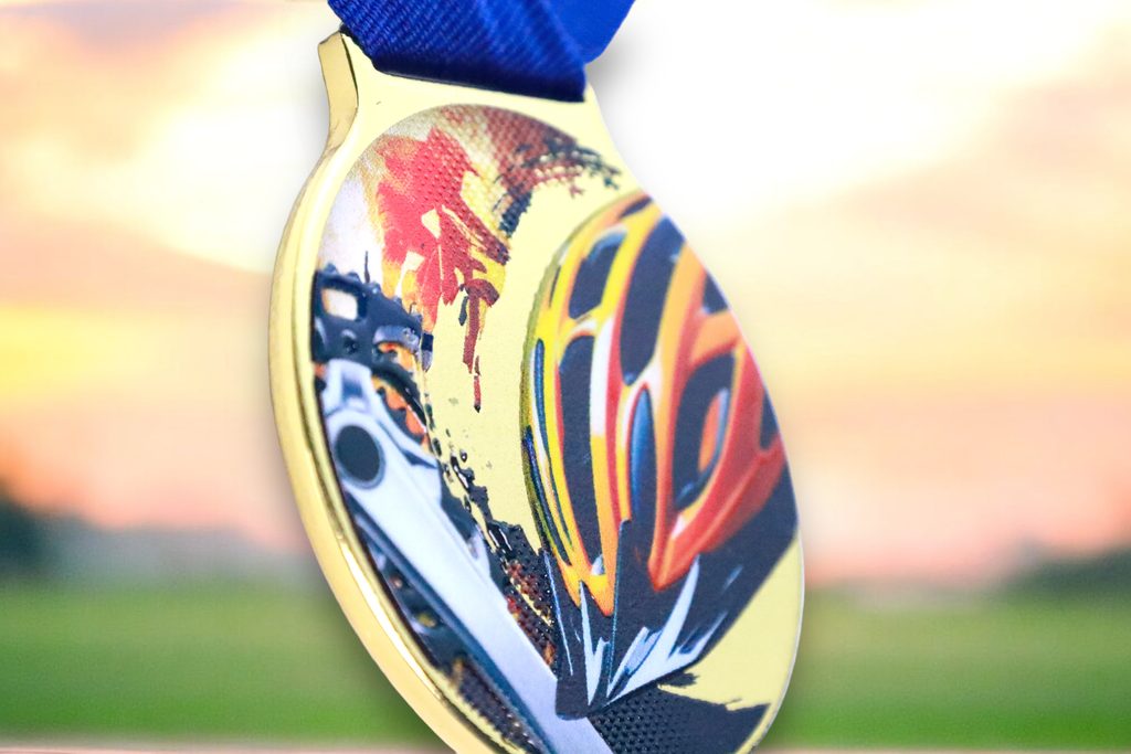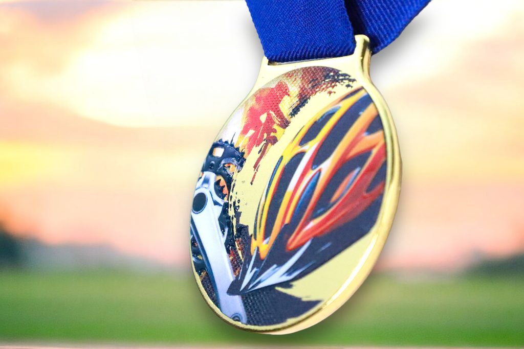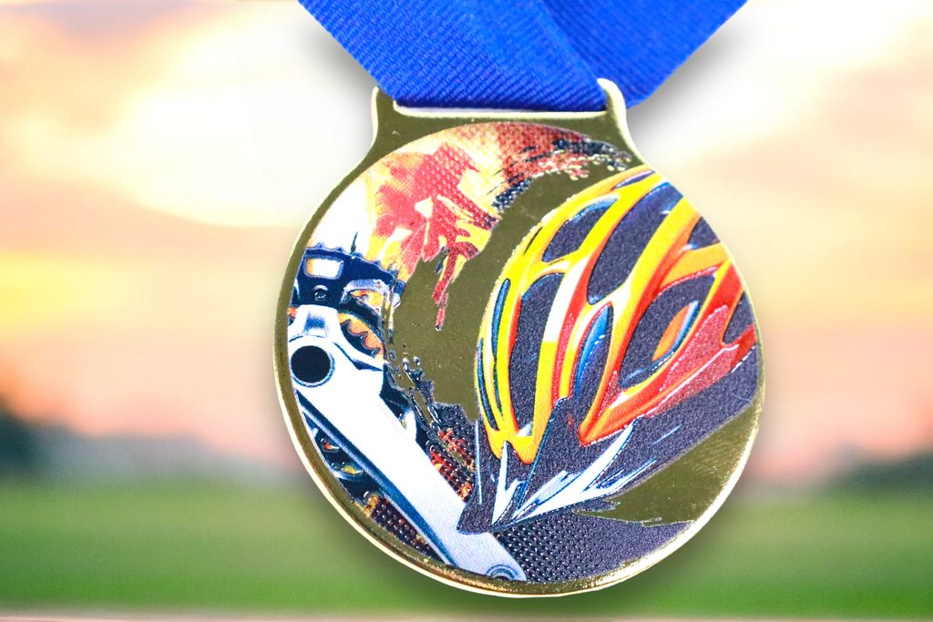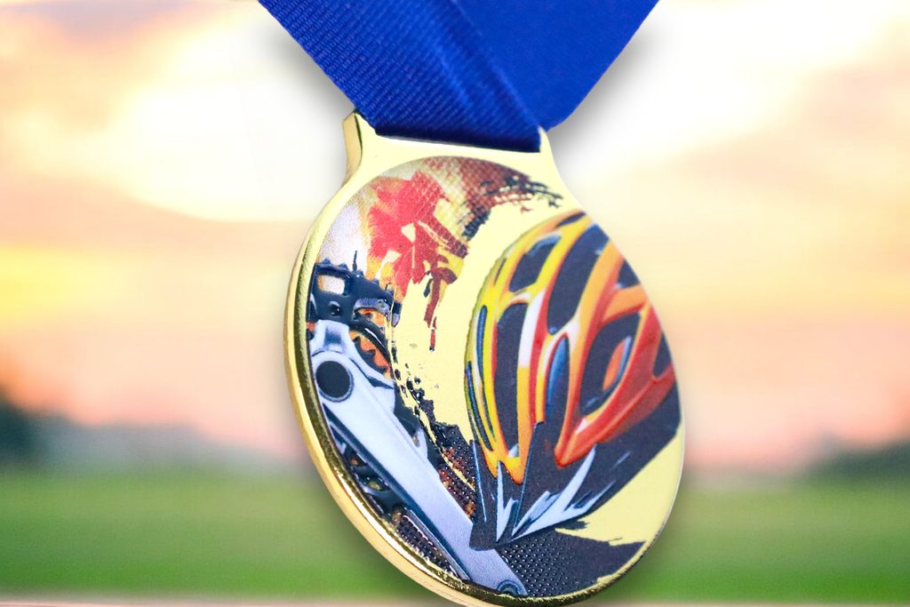 Kovová medaile s UVHQ potiskem a speciálním 3D lakem. Ceny medailí za 1 kus včetně provlékací stuhy.