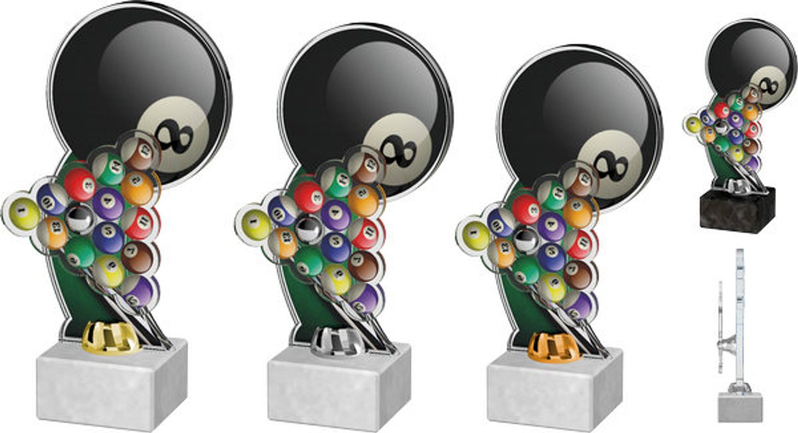 Akrylátová trofej. Podstavec bílý. V ceně trofeje není zahrnuta cena štítku. Akrylátový motiv 1 cm. Držák motivu A-zlato, B-stříbro, C-bronz (možno vyměnit). Podstavec bílý nebo černý. Výšky trofejí jsou orientační. Dárkové balení.