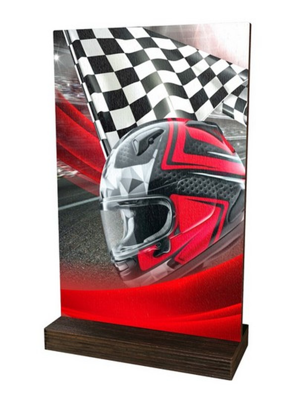 Dřevěná plaketa - 8mm březová překližka + 20mm podstavec březová překližka. Možnost tisku vlastního textu do trofeje nebo na kovový štítek na podstavec.
