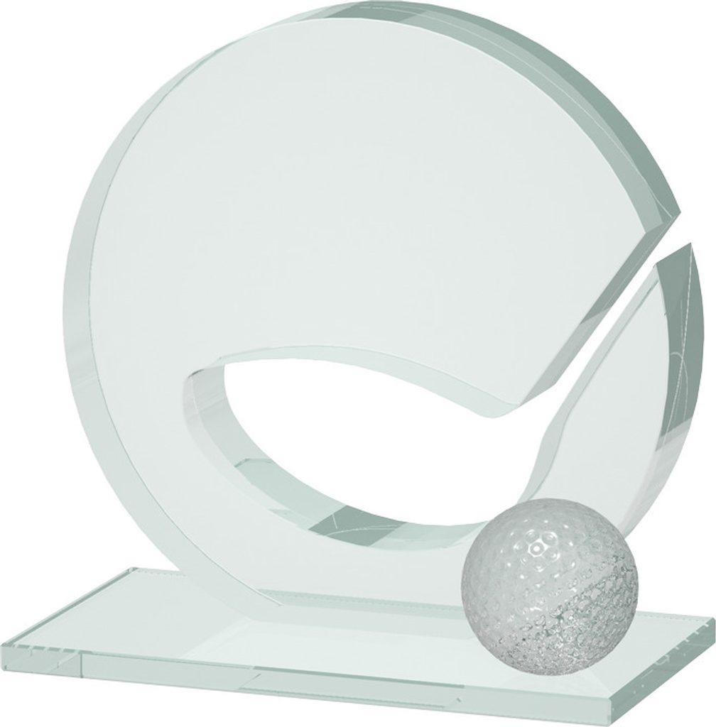 Na trofej lze umístit logo či text. Kombinace akrylátu a skla. Akrylátový motiv 2 cm. Cena včetně potisku.