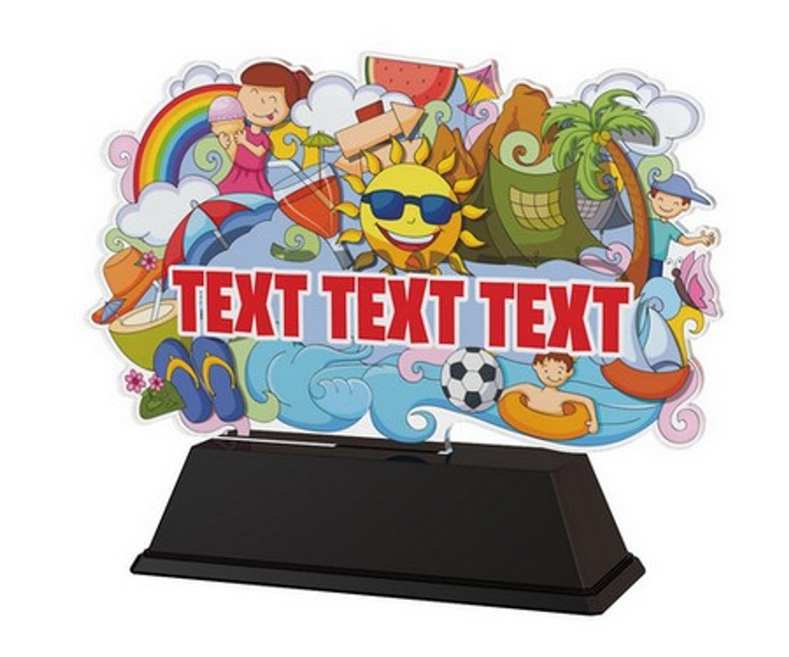 Akrylátová trofej s UV potiskem. Jednostranný tisk. V ceně trofeje není zahrnuta cena štítku. Akrylátový motiv. Tloušťka 0.4 cm.Podstavec černý. Výšky trofejí jsou orientační.